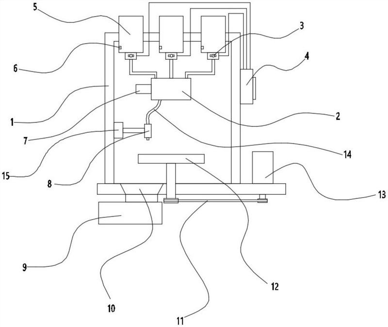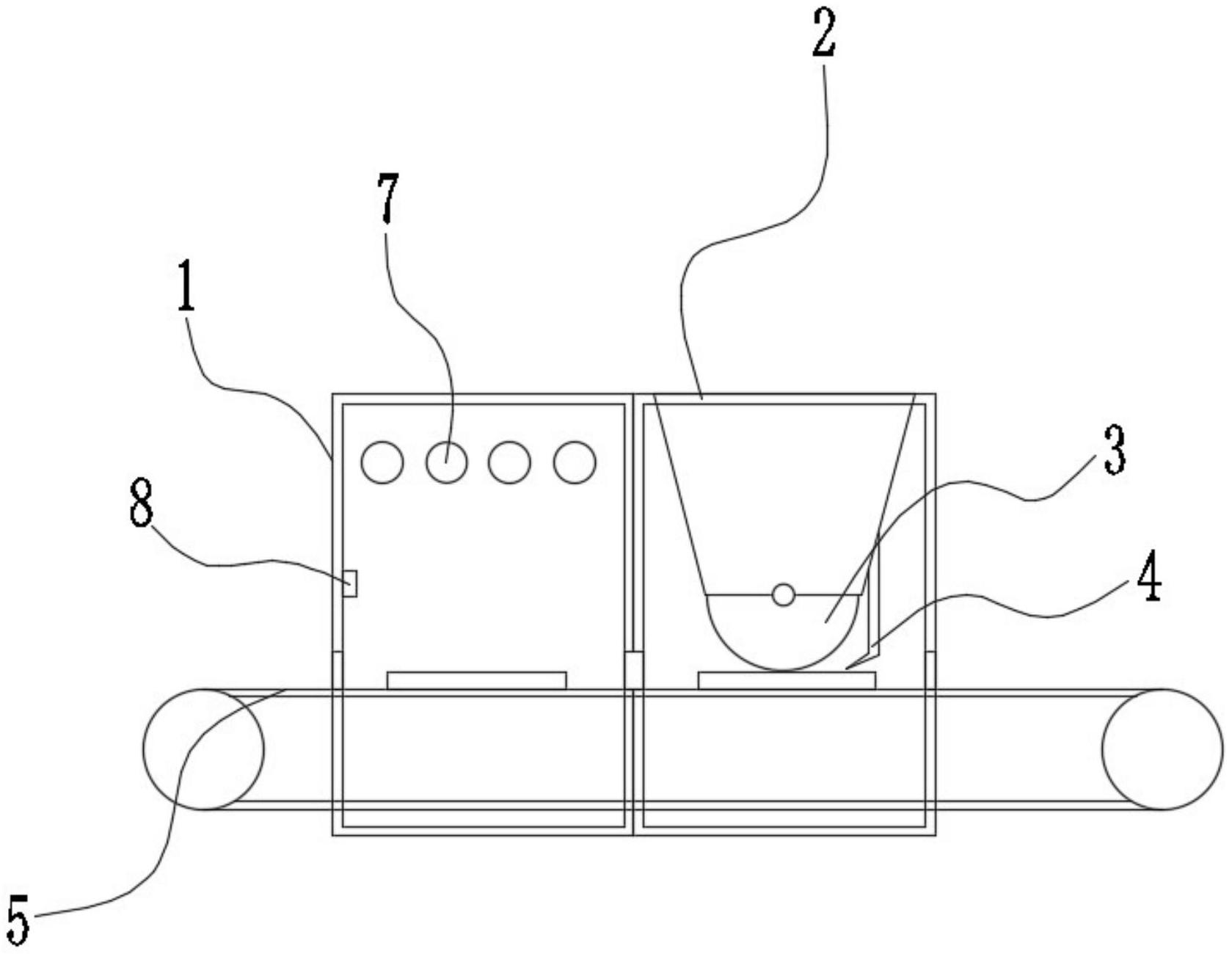一种自动配料蚀刻机本实用新型公开了一种自动配料蚀刻机,包括蚀刻壳体,所述的蚀刻壳体的顶部安装有若干个
