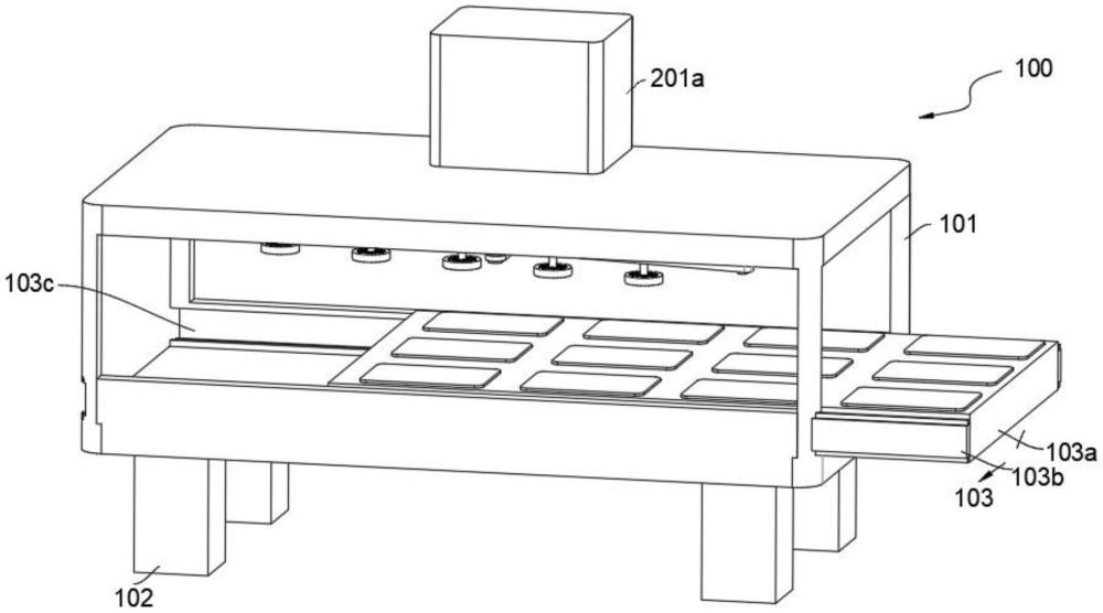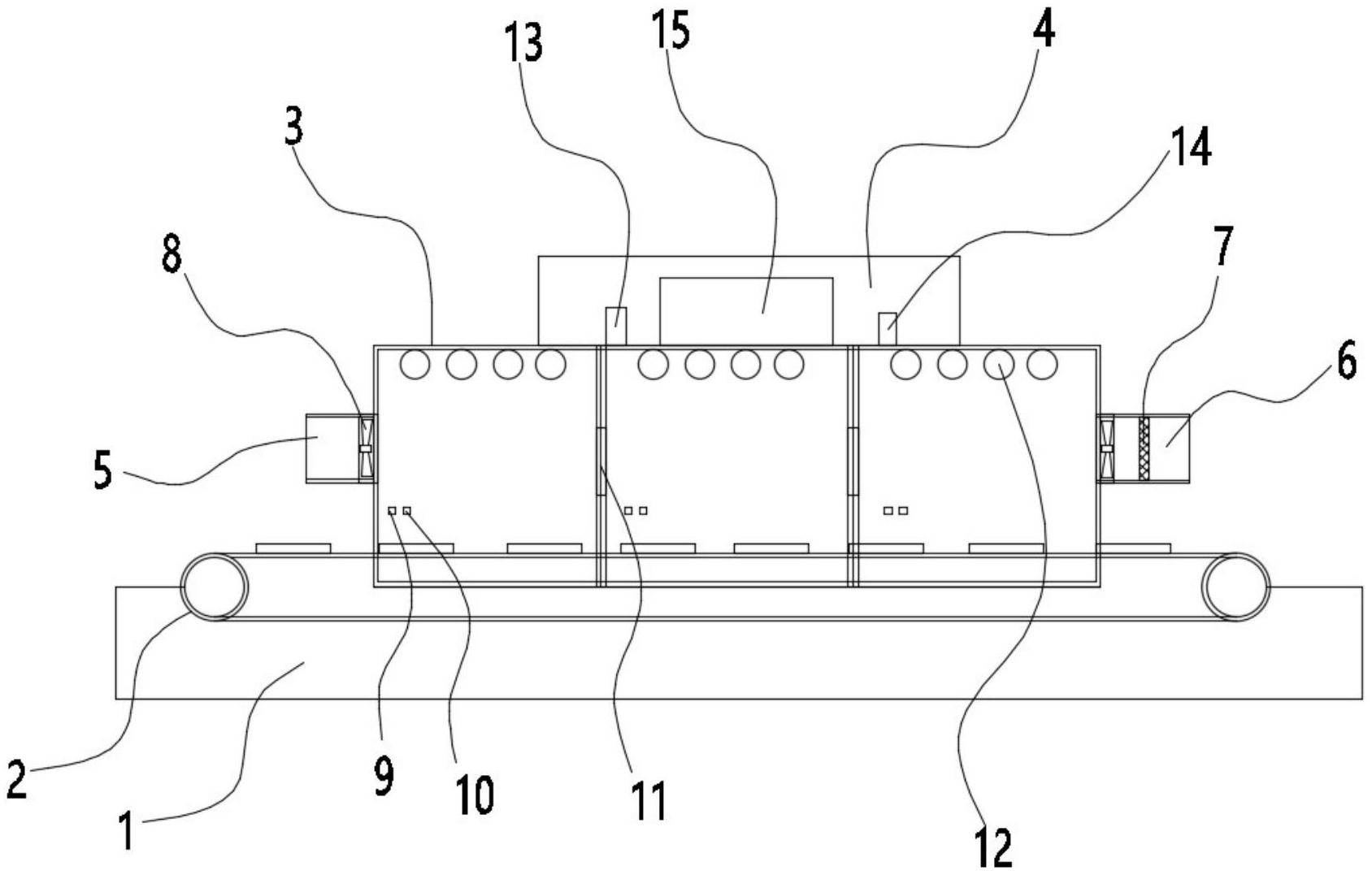 一种变温预热曝光机本实用新型公开了一种变温预热曝光机,包括机台,所述的机台的上侧设置有输送平台,所述