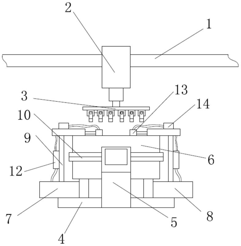 一种蚀刻喷淋机构及固定装置本实用新型公开了一种蚀刻喷淋机构及固定装置,涉及蚀刻技术领域,包括,支撑部
